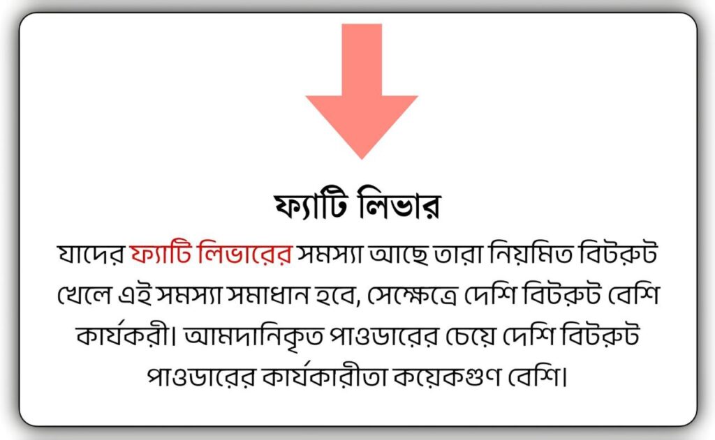 একগ্লাস পানিতে ১ থেকে ২ চা চামচ বিটরুট পাউডার মিশিয়ে ১০ মিনিট রেখে দিন। দেখবেন গ্লাসের নিচে বিটের আশের তলানি জমেছে, এই তলানি অংশটুকু ফেলে দিয়ে শুধুমাত্র বিটরুটের নির্যাস লাল অংশটুকু পান করুন। এই নিয়মে সকালে একবার ও সন্ধা/রাত্রে আরেকবার পান করলে আশাকরি উপকৃত হবেন, ইনশাআল্লাহ।