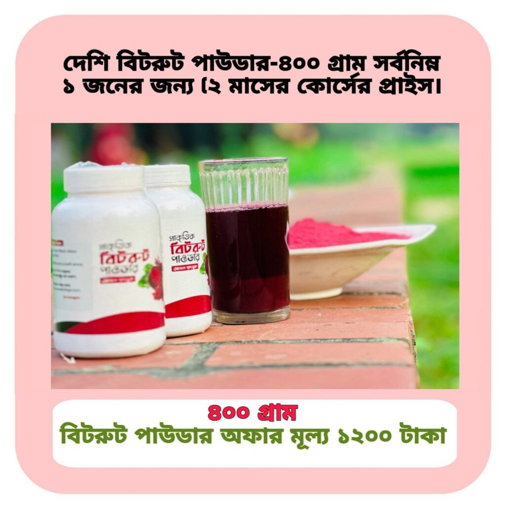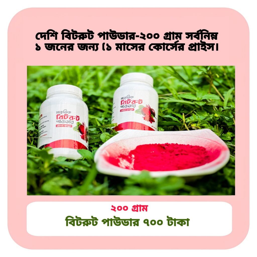 বিটরুট আমাদের দেশের কৃষকেরা চাষ করে, তাই অনেকগুলো ধাপ পার করে দীর্ঘদিন আগের আমদানি করা বীটরুট না খেয়ে মাত্র ৩/৪ দিনের মধ্যে প্রস্তুতকৃত টাটকা দেশি বিটরুট পাওডার খান কৃষকের মুখে হাসি ফুটবে, দেশের অর্থনীতি শক্তিশালী হবে।